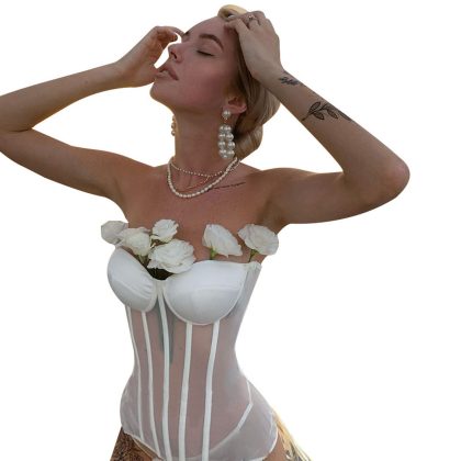 Corset chic diseño floral blanco Talla S