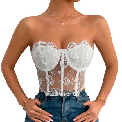 Corset sujetador sin tirantes de encaje blanco Talla L