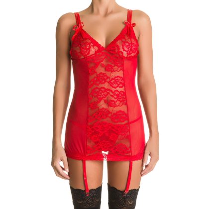 Babydoll rojo con encaje y braga S-M